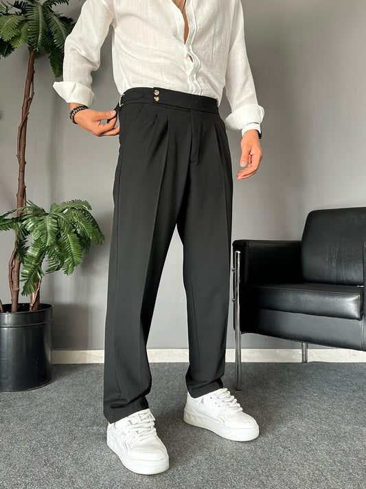 Pantalon Élégant à Double Paça Noir